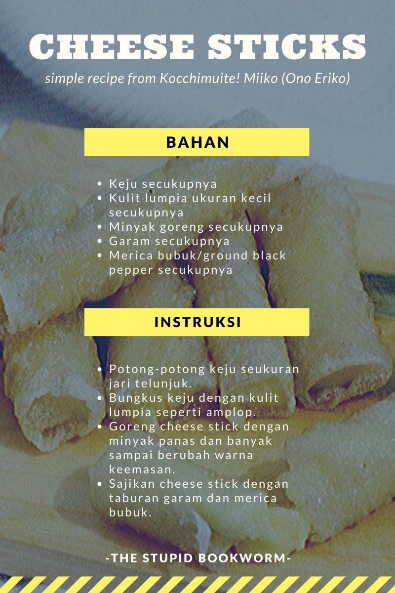 Tapi kali ini saya masak yang paling gampang aja. Cheese stick yang dibawa Mari-chan untuk slumber party di rumah Miiko.