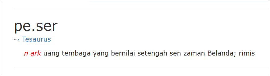 Ternyata, kata “sepeser” yang sering digunakan dalam kalimat “tak punya uang sepeser pun” adalah uang logam dari zaman Belanda. Begitu juga peribahasa “setali tiga uang”.