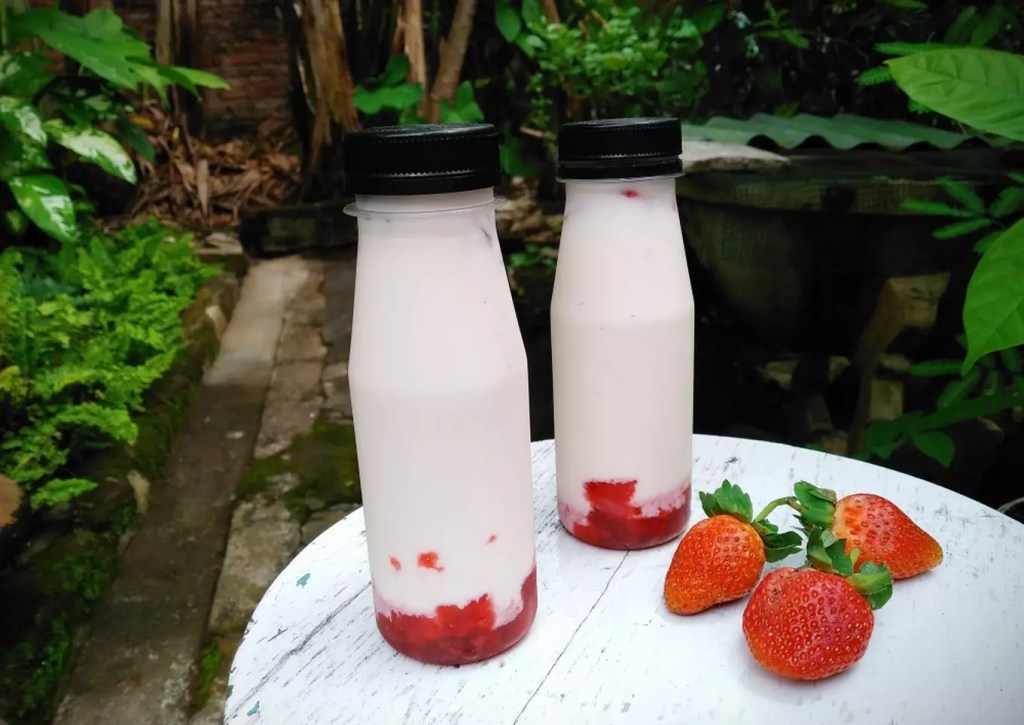 Bisa juga diolah jadi Korean strawberry milk yang sempat viral pas awal pandemi dulu. Rasanya seger dan nggak terlalu manis.