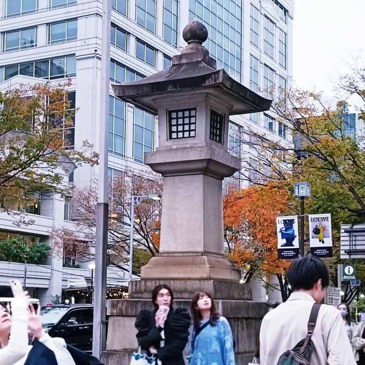 Begini penampakan lentera batunya. Letaknya di sebelah pos polisi dan pintu A3 Omotesando Subway Station.
