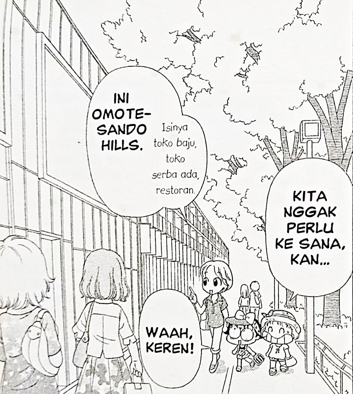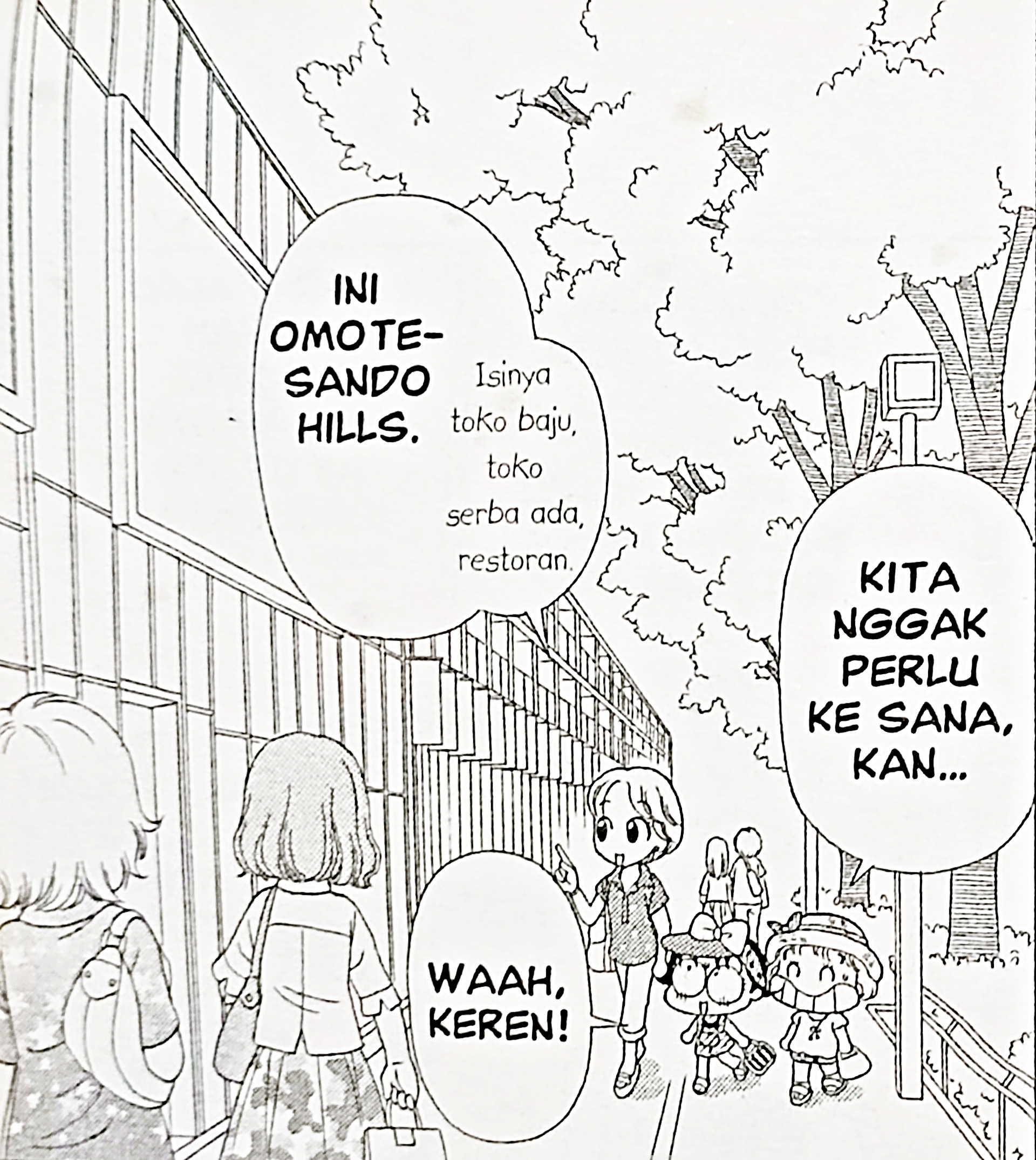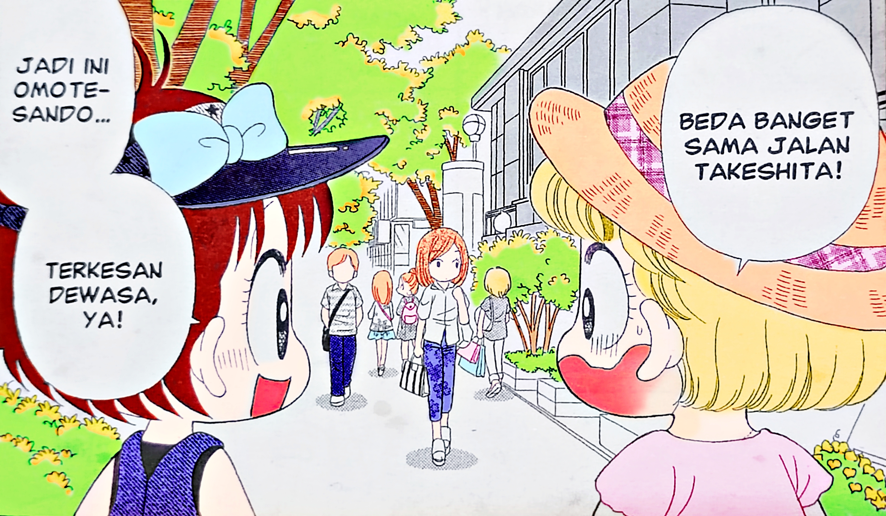 Sebelum ke Omotesando dan Sanyodo Shoten, sebenarnya Miiko dan Mari-chan juga diceritakan main ke Takeshita Street dulu.