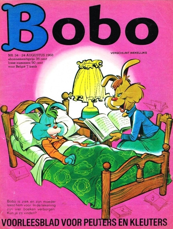 Majalah Bobo tertua yang berhasil saya temukan adalah versi Belanda yang diterbitkan Blink Publishers sejak 1968. Maskotnya adalah kelinci biru berusia 9 tahun yang bernama Bobo.