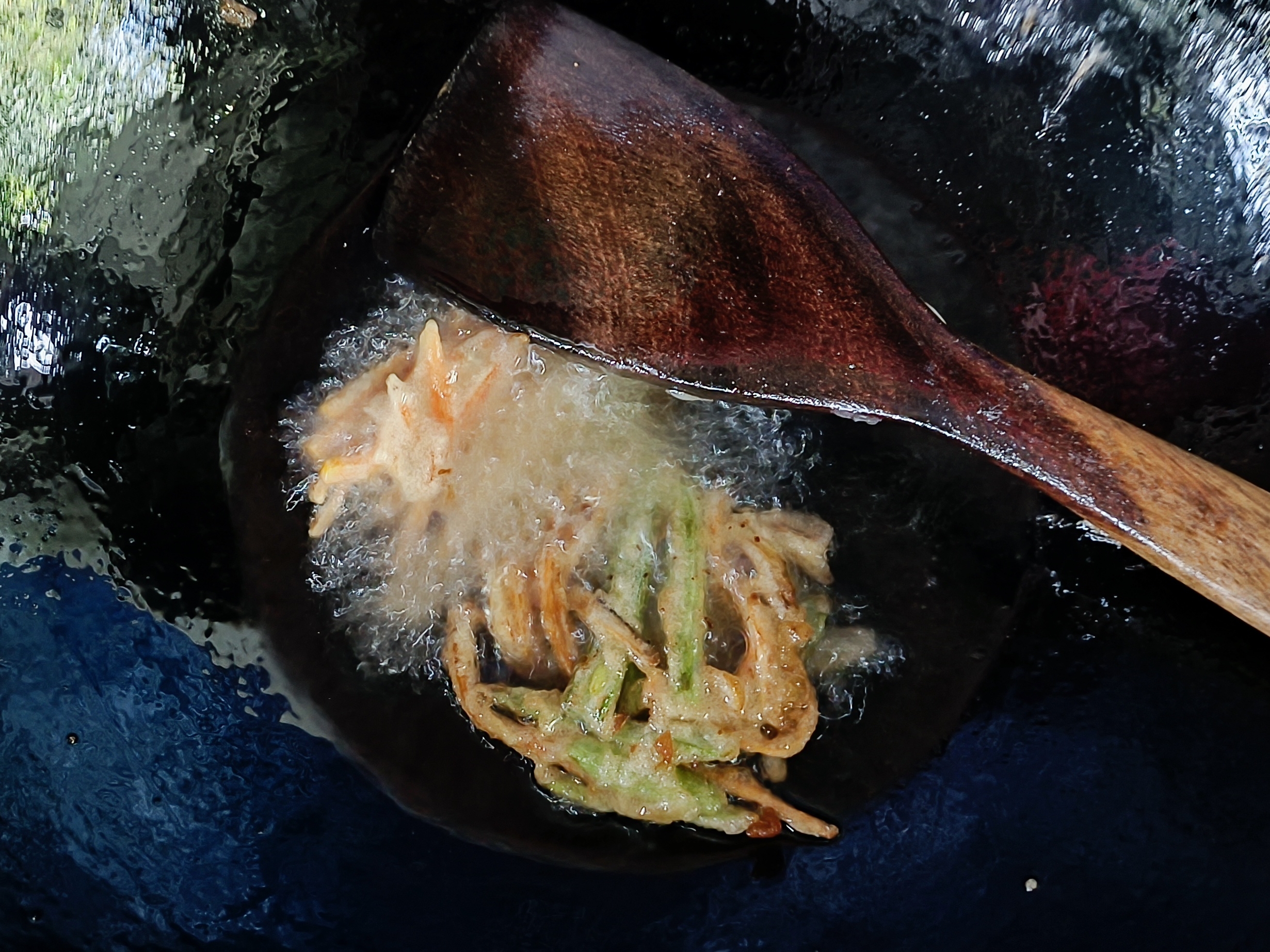 - Goreng bahan-bahan tempura sedikit demi sedikit agar tidak saling menempel di wajan.