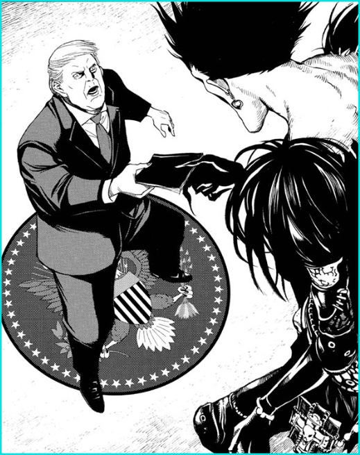 Porsi peran Trump di chapter ini lumayan besar. Soalnya dia doang yang kesampaian ketemu Ryuk. Apakah karakternya ditampilkan secara positif atau negatif? Saya rasa agak negatif, sih! Namun, secara keseluruhan Trump digambarkan netral. Main aman saja, daripada dirujak simpatisannya.